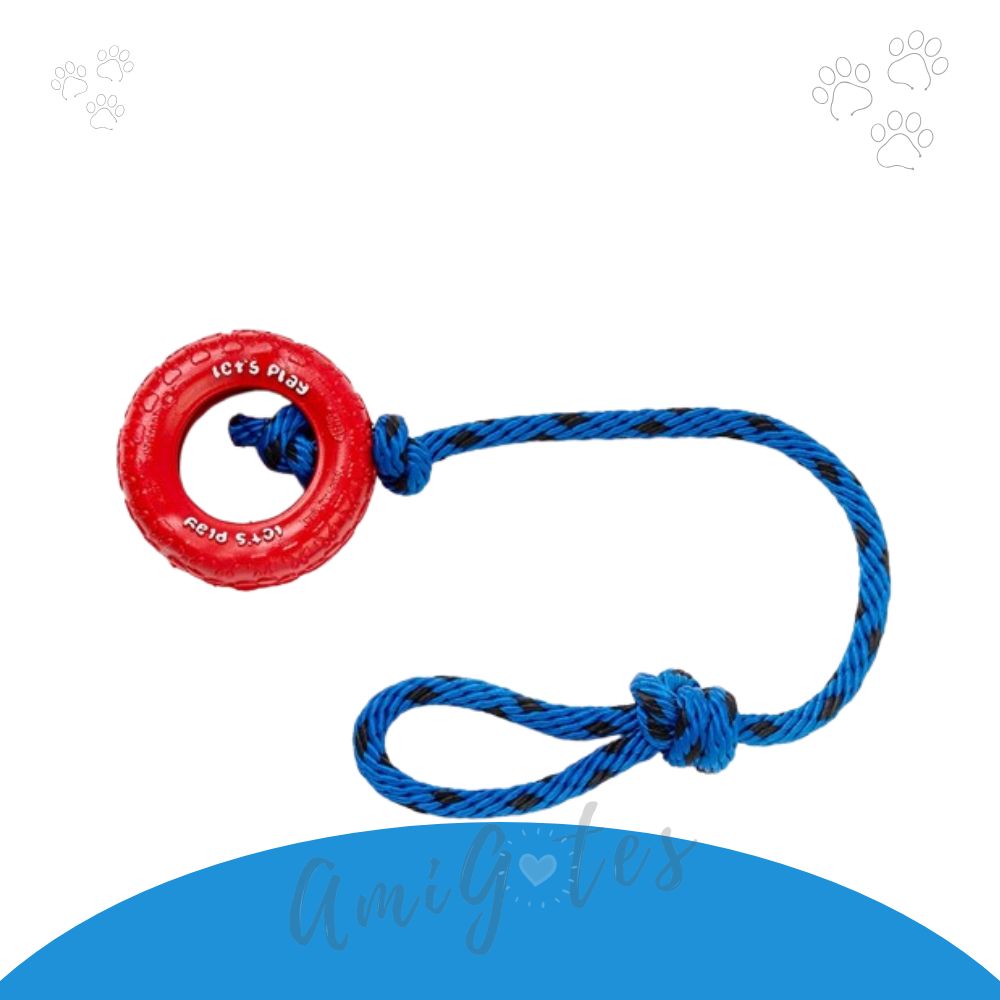 Juguete Resistente para Razas Grandes Hecha de Goma Termoplástica atóxica, promueve la salud dental y el juego interactivo. Resistente y segura, cuenta con una manija protectora. Ideal para fortalecer la mandíbula de tu perro.